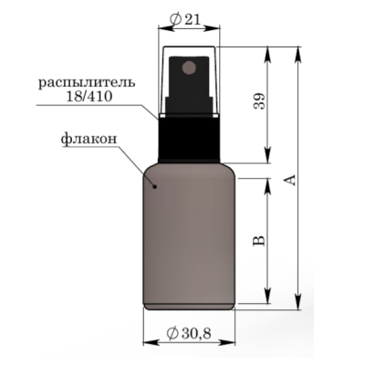 Герметичный флакон для жидкостей к кнопочным распылителем 18/410