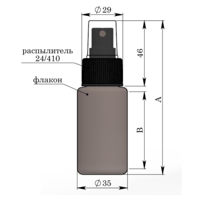 Герметичный флакон для жидкостей с кнопочным распылителем 24/410