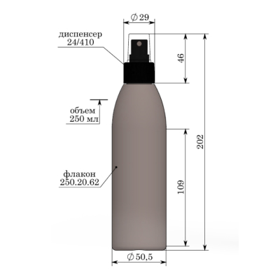 Герметичный флакон для жидкостей с кнопочным распылителем 24/410