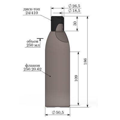 Герметичный флакон для жидкостей с крышкой диск-топ 24/410