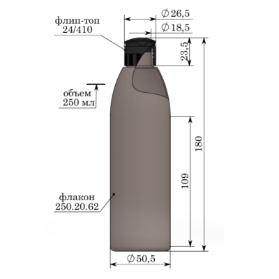 Герметичный флакон для жидкостей с крышкой флип-топ 24/410
