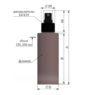 Герметичный флакон для жидкостей с кнопочным распылителем 24/410