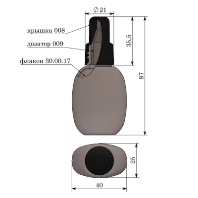 ОВАЛ/OVAL 30 мл - Крышка-008 Дозатор-009