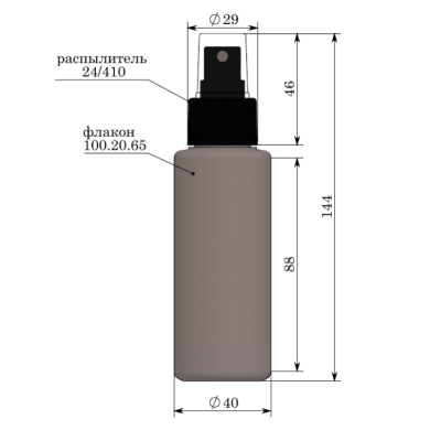 Герметичный флакон для жидкостей с кнопочным распылителем 24/410
