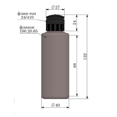 Герметичный флакон для жидкостей с крышкой флип-топ 24/410