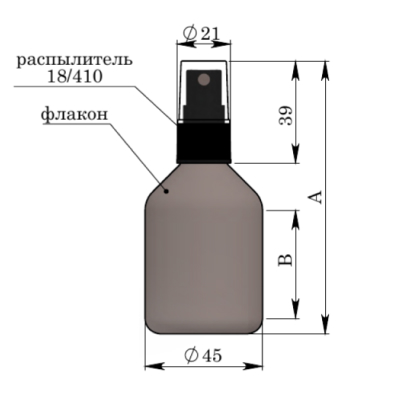 Герметичный флакон для жидкостей к кнопочным распылителем 18/410